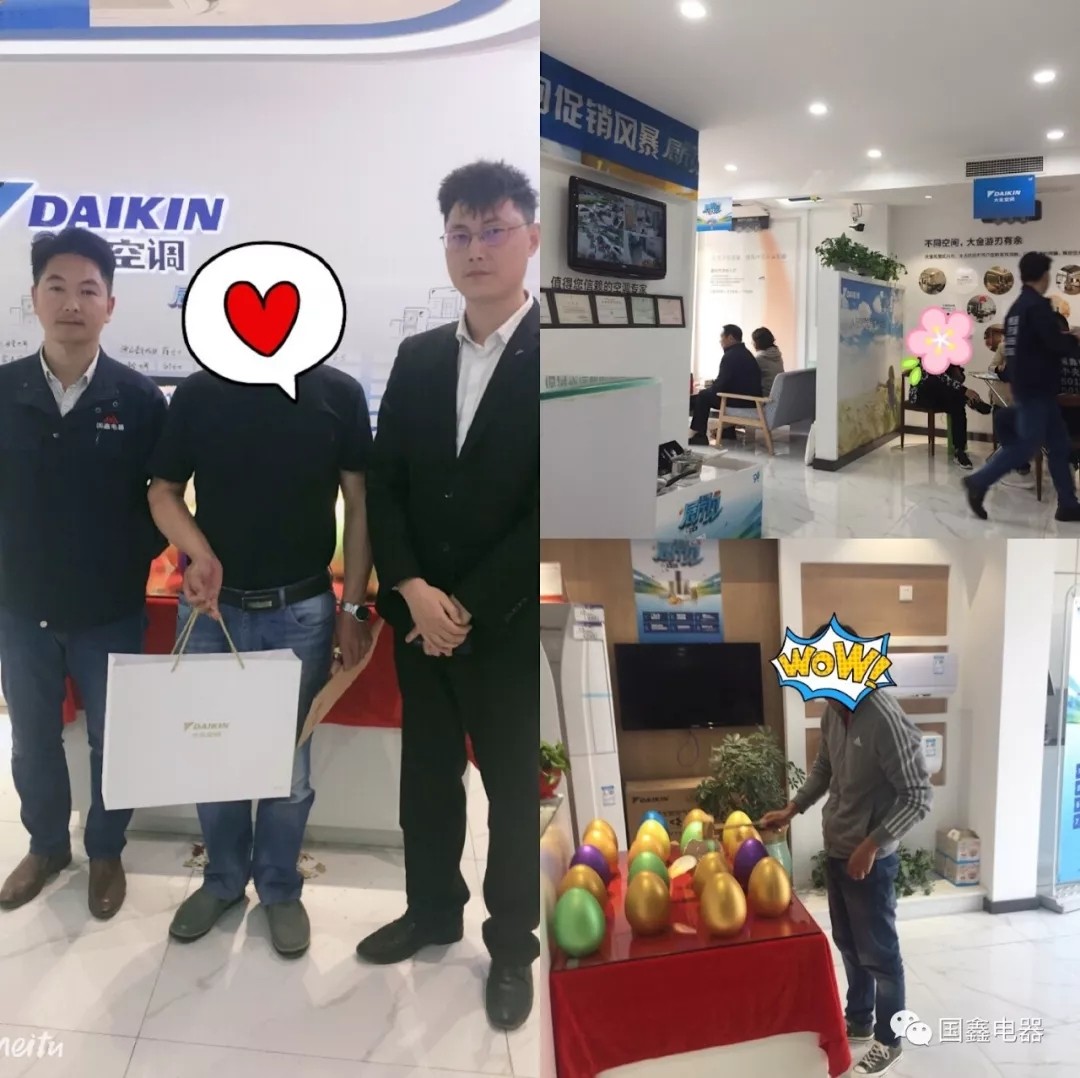 恭喜新鄉(xiāng)市國鑫電器在各位業(yè)主朋友、大金廠家領導的協(xié)助下,在4月19日、20日、21日三天圓滿完成大金空調春季展廳見銷售任務。